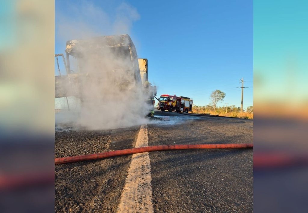 Uma carreta pegou fogo na BR-153, na manhã deste domingo (27), entre as cidades de Guaraí e Presidente Kennedy, no noroeste do estado. O Corpo de Bombeiros Militar atendeu a ocorrência e precisou parar o trânsito para apagar o fogo que estava concentrada na parte da fremte do veículo.