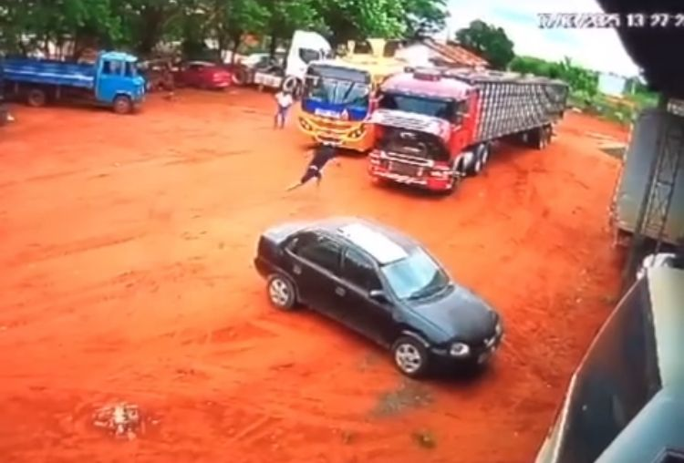 Em vídeo feito por uma câmera de monitoramento é possível ver que o suspeito aparece de capacete no local e armado. A vítima tenta correr, mas acaba sendo baleado pelas costas.