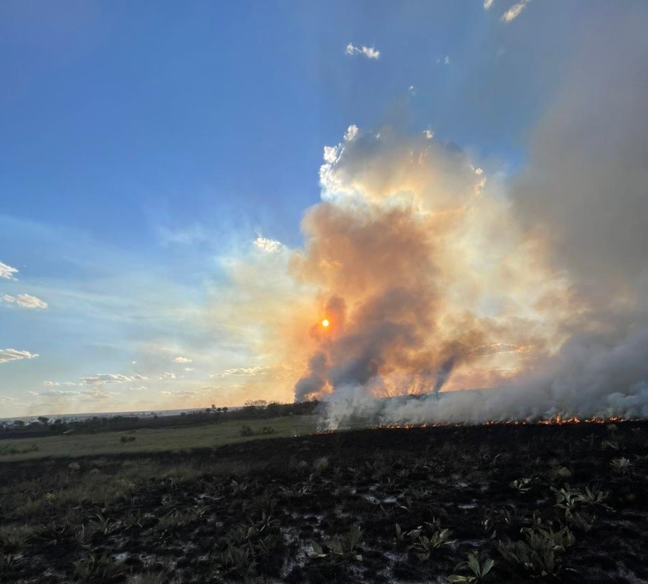 Um incêndio de grandes proporções atingiu a região do Jalapão e causou a destruição de grande parte de um campo de capim dourado. O fogo se aproximou do Quilombo Mumbuca, em Mateiros.