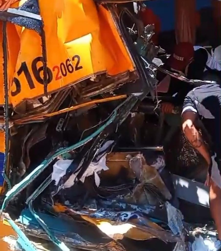 ônibus ficou completamente destruído após a colisão. Veja imagens: